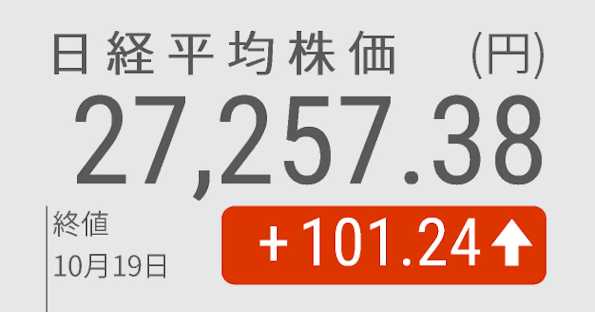 日経平均続伸、終値は101円高の2万7257円 - 日本経済新聞