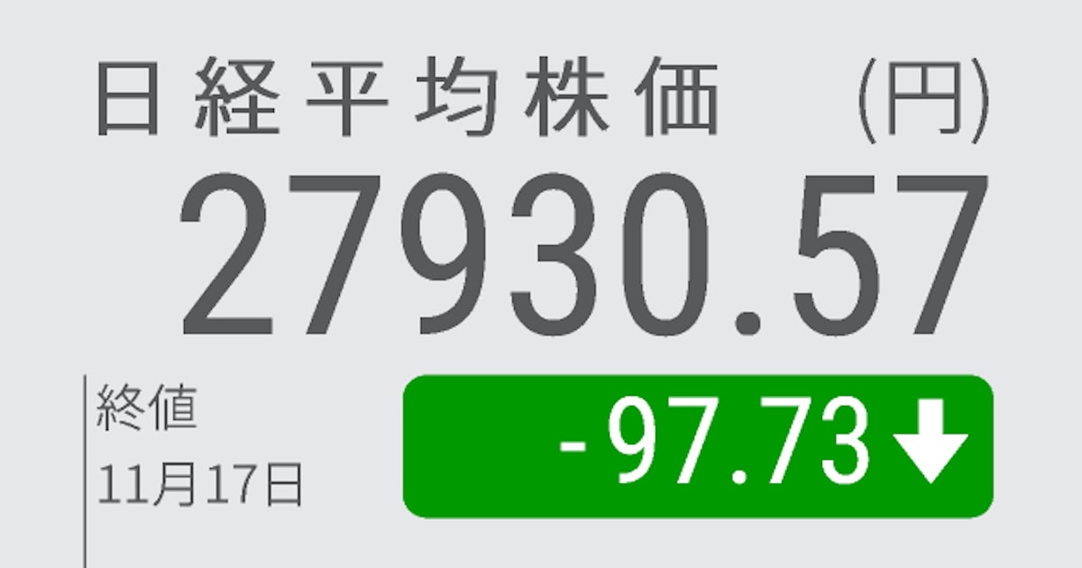 日経平均が反落 97円安の2万7930円 - 日本経済新聞