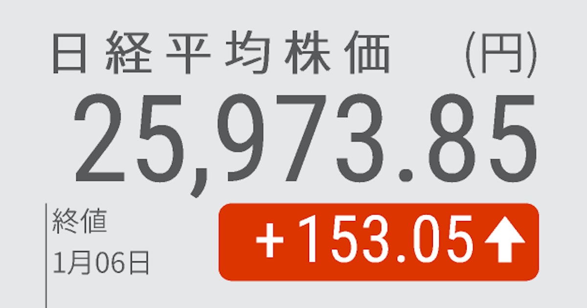6日の東京株式市場で日経平均株価は続伸し、大引けは前日比153円05銭(0.59%)高の2万5973円85銭だった。朝方は前日の米株式相場の下落を受けて売りが先行したが、最近の下落傾向で値ごろ感が強まったとみた海外短期筋による買いが次第に優勢になった。一部の値がさ株が買われたほか、対ドルでの円相場の下落を支えとした自動...