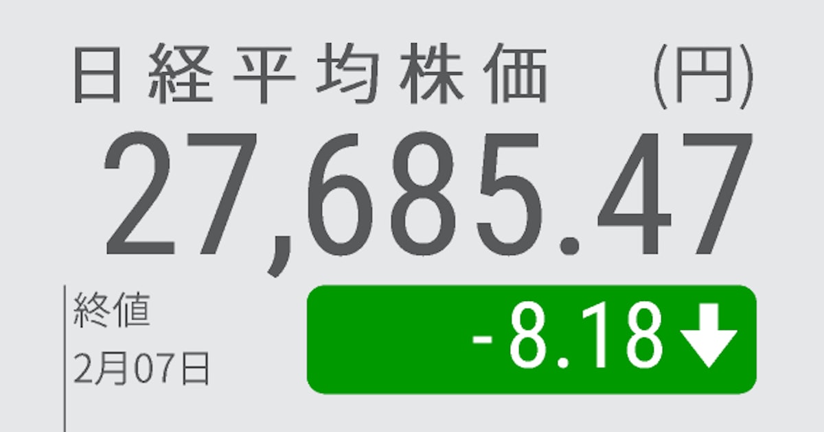 日経平均小反落、終値8円安の2万7685円 - 日本経済新聞