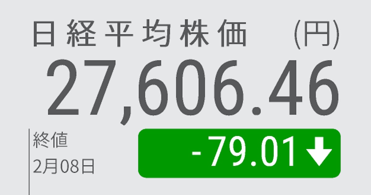 日経平均株価終値 27606 -79.01