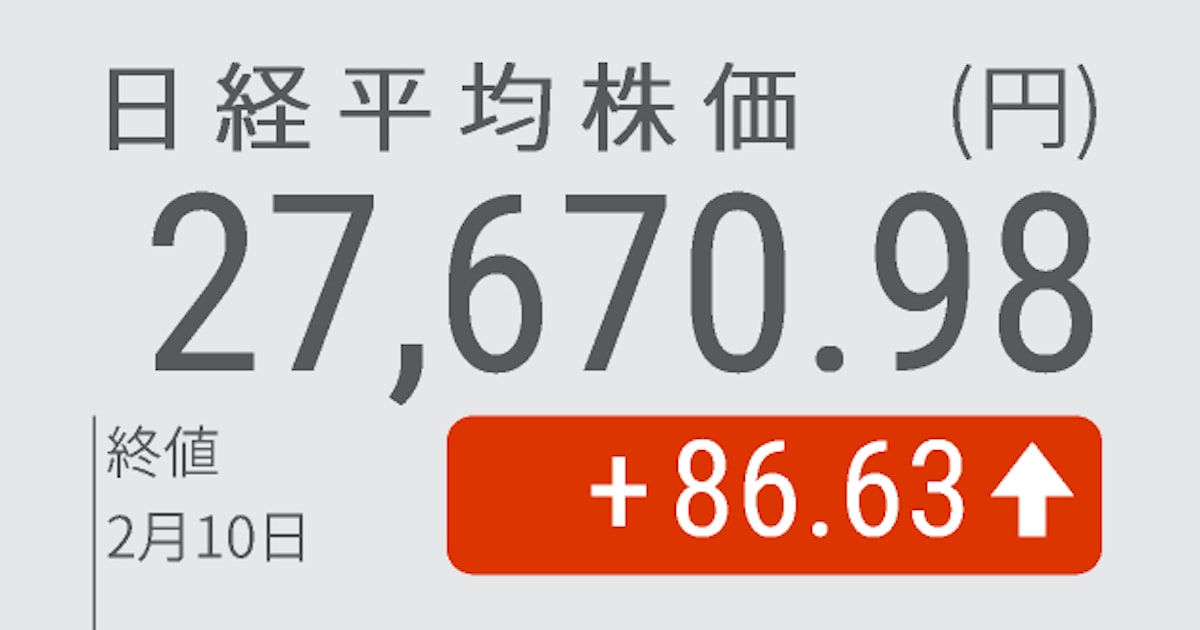 日経平均4日ぶり反発、終値86円高の2万7670円 - 日本経済新聞