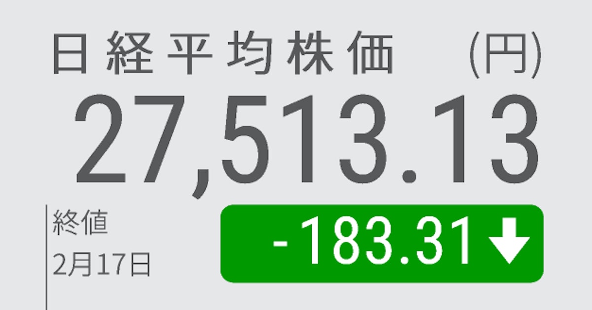 日経平均反落、終値183円安の2万7513円 - 日本経済新聞