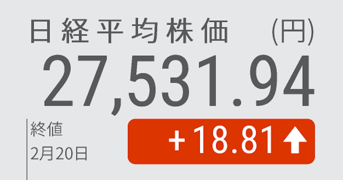日経平均反発、終値18円高の2万7531円 - 日本経済新聞
