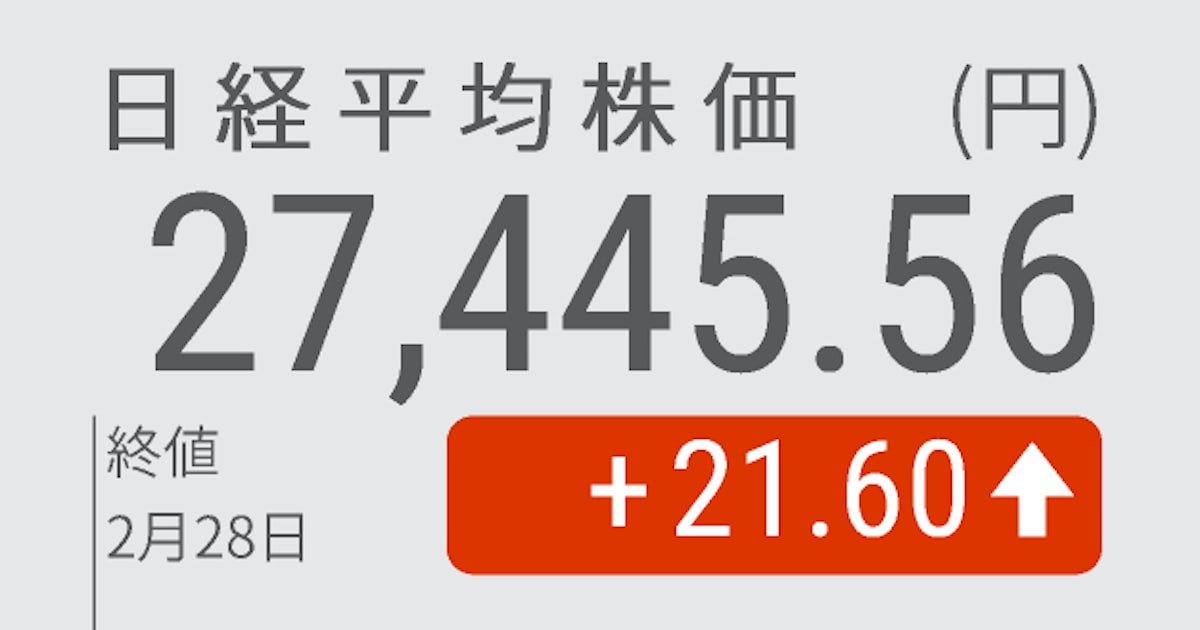 日経平均反発、終値は21円高の2万7445円 - 日本経済新聞